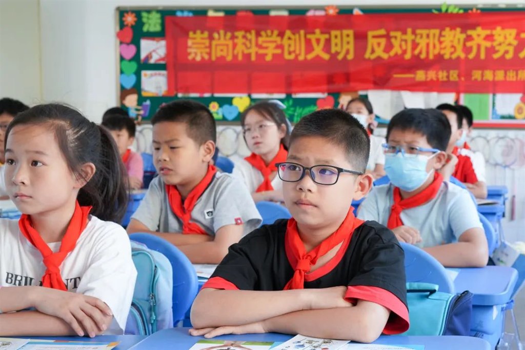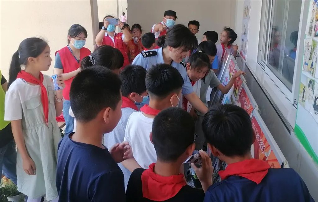 活动中,燕兴社区工作人员和志愿者们通过反邪教、禁毒展板展示、发放宣传资料等形式,让同学们了解邪教组织和毒品的危害。