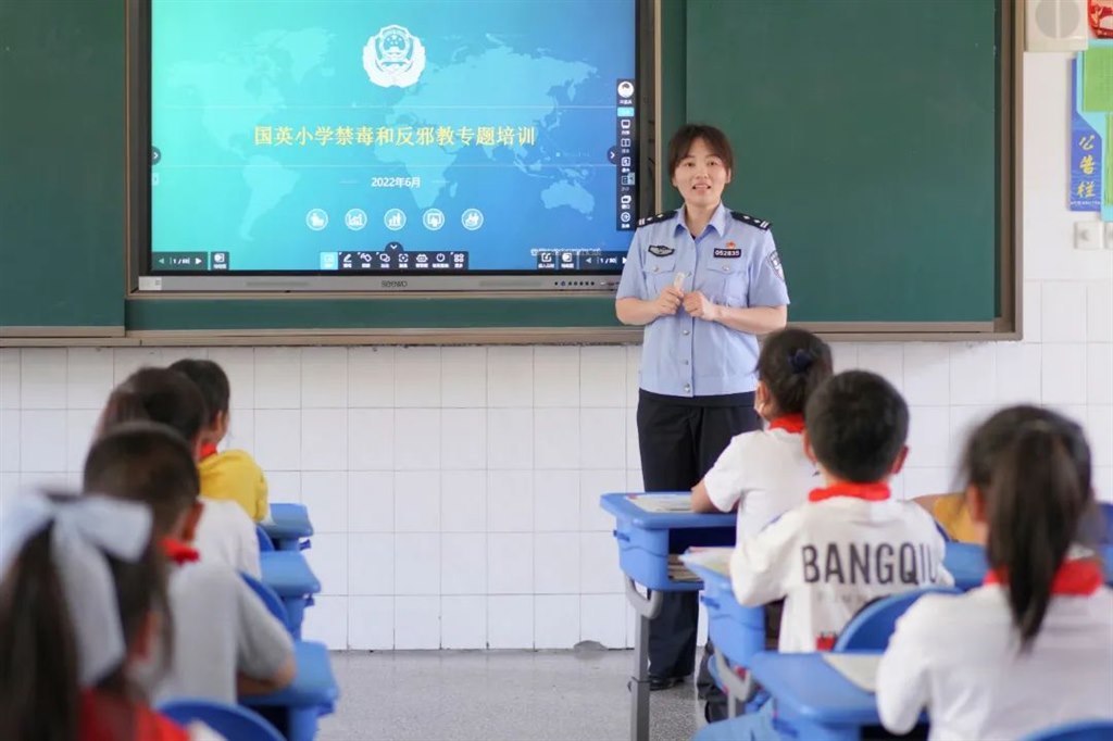河海派出所的易警官还为同学们上了一堂生动的禁毒和反邪教专题课。向同学们详细讲解邪教的种类、邪教的表现形式和毒品的危害、相关法律法规等知识。同学们认真倾听、专心学习,在问答环节积极互动。