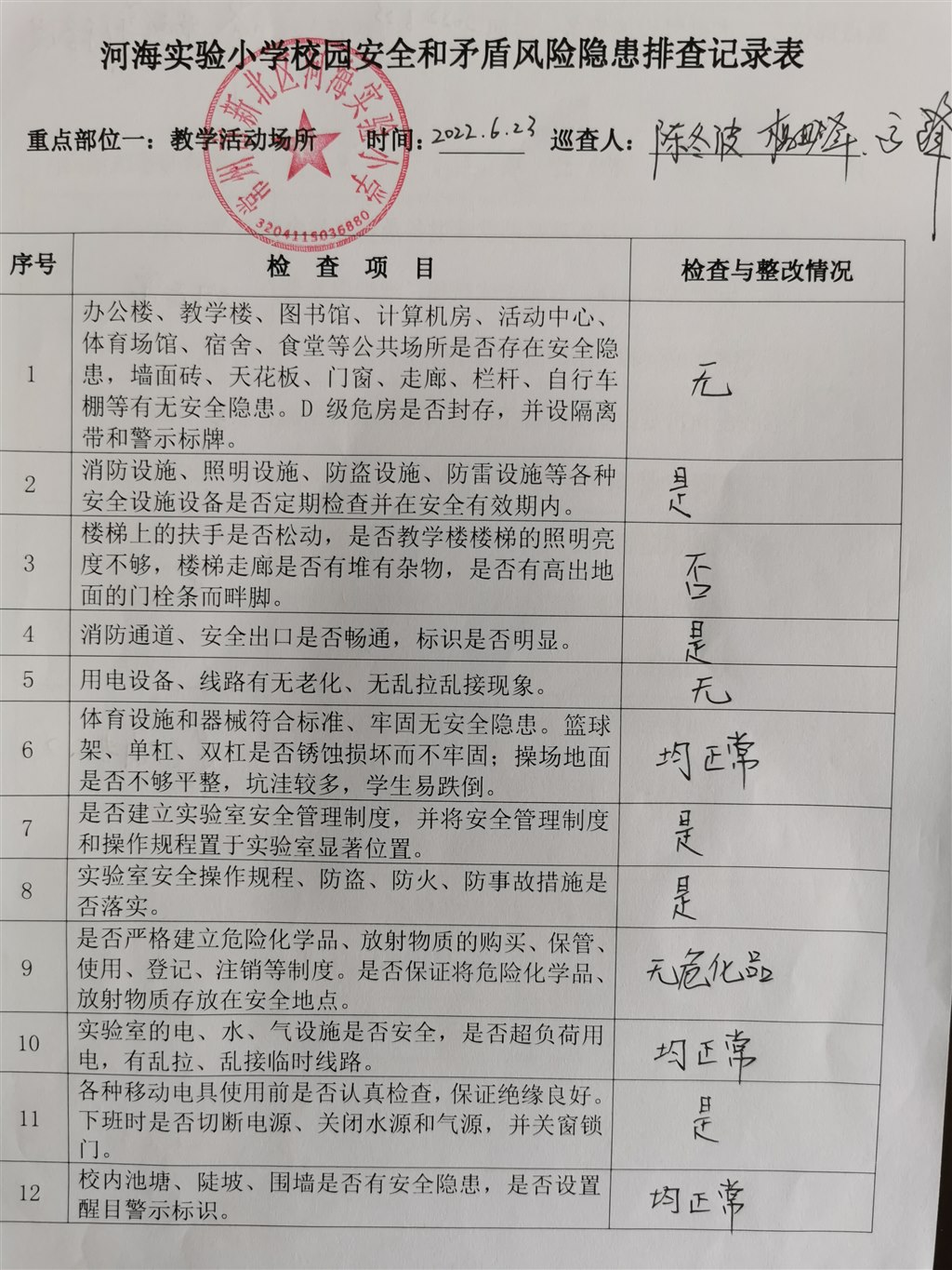 2022年安全生产月系列活动——安全大检查台账