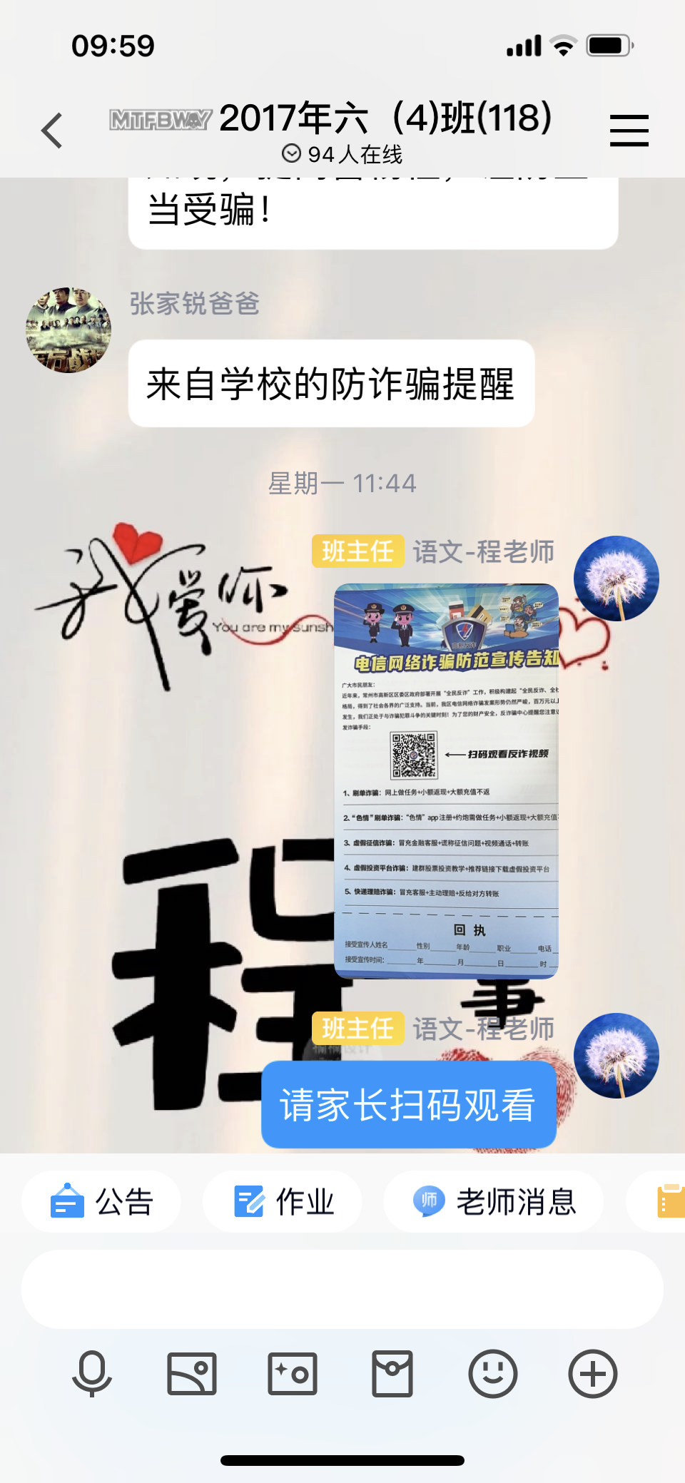 在民警和老师们的引导下,学生们将反诈宣传材料带回家,通过扮演扫码观看反诈视频、誊写阅读5种典型高发诈骗手段等方式“向家人和朋友宣传反诈知识,发挥一个学生带动一个家庭的宣传辐射作用,进一步提升学生家长反诈防骗意识,最大限度把反诈知识传播到每一个角落,使反诈宣传常态化,持久化。