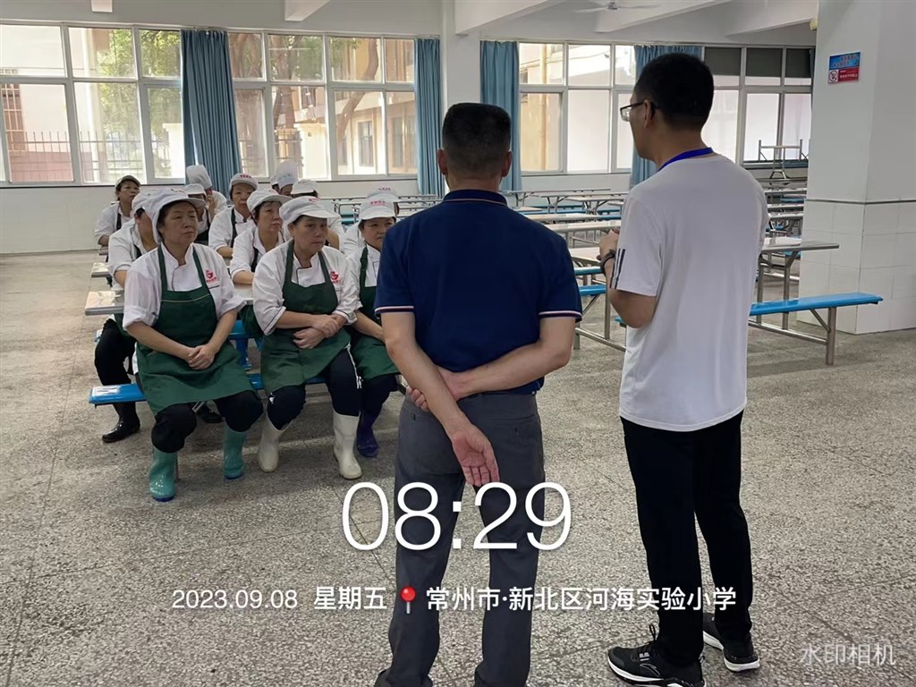 为保障校园食品安全,强化学校食堂管理,进一步增强食堂工作人员的安全意识,提升安全工作责任心与业务技能,9月8日上午河海实验小学河海路校区召开一周食堂食品安全管理工作例会。餐饮公司食堂负责人王主任、学校后勤服务部陈主任及全体食堂员工参加本次会议。
