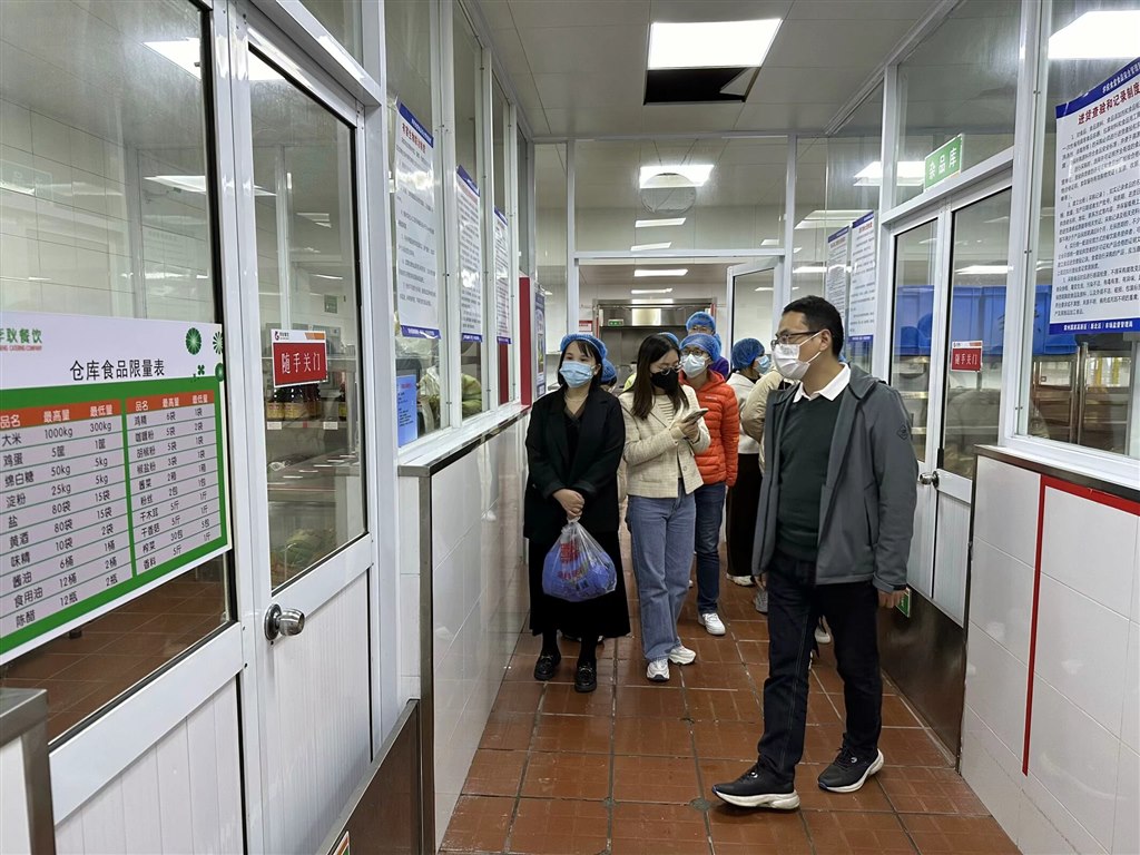 为让家长更全面直观地了解学校食堂工作和学生饮食情况,有效监督校园用餐卫生安全和营养搭配,进一步提升学校后勤保障服务水平,11月22日,学校后勤保障处邀请家委会代表参观学校食堂餐厅、后厨,并品尝学生饭菜。
