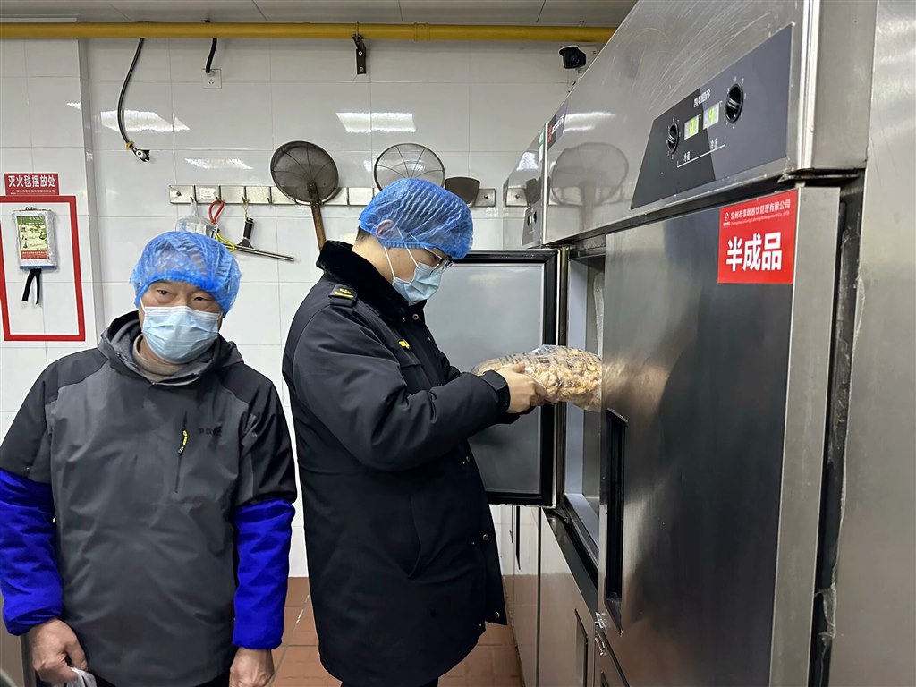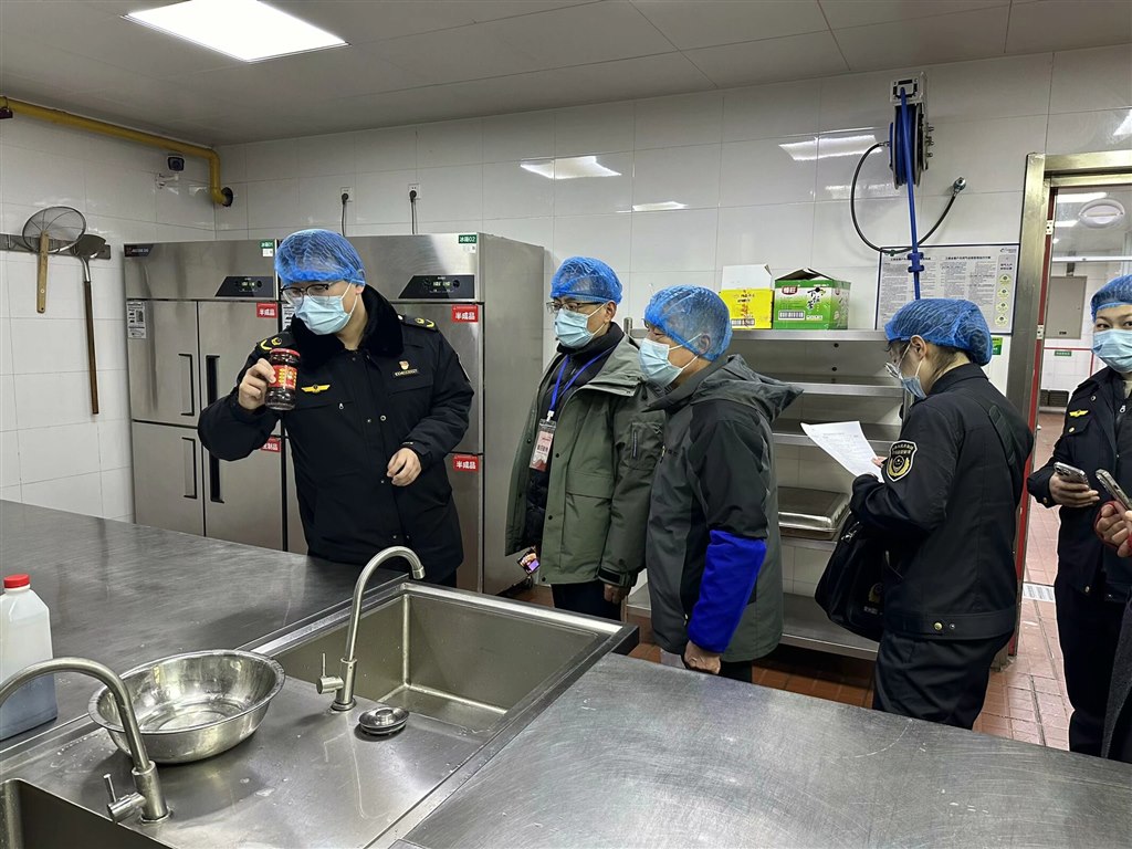 检查组现场对食堂的相关资质、食品安全管理制度、工作人员健康体检合格证明、食品及食品原料采购验收台账、食品加工操作流程、食品原料贮存、食品留样记录及留样重量、餐具清洗消毒记录、以及食堂环境卫生状况等进行了仔细检查;对食堂在日常管理、食品卫生安全意识、食堂人员的到位操作做出了关键性指导。