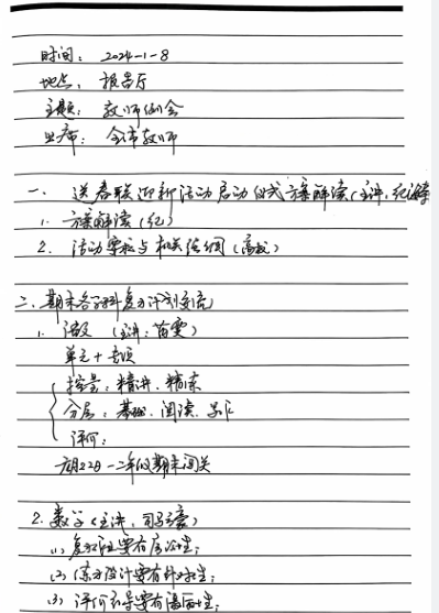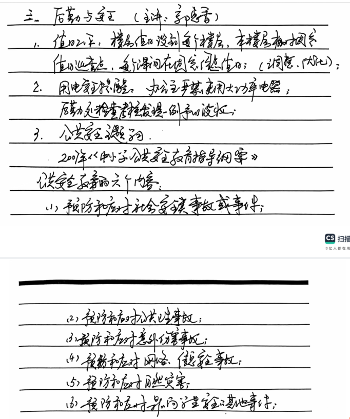 1月8日下午,河海实小召开了“凝心聚力迎期末,齐抓共管保平安”期末教师大会,会议先后交流了学期末重点工作、各部门期末复习计划,最后由分管后勤工作的郭校长对全体教师开展安全教育,郭校长再次强调了临近期末,安全意识不能松懈。董炯天气寒冷,各班各室要注意冬季用电安全,严禁使用大功率电器,防止火灾事故的发生,同时,各班要关注学生课间安全,尤其是不能追逐打闹,远离窗户和栏杆,护导老师要及时到岗,加强课间巡视,发现安全隐患要立即制止,切实做好校园安全工作。