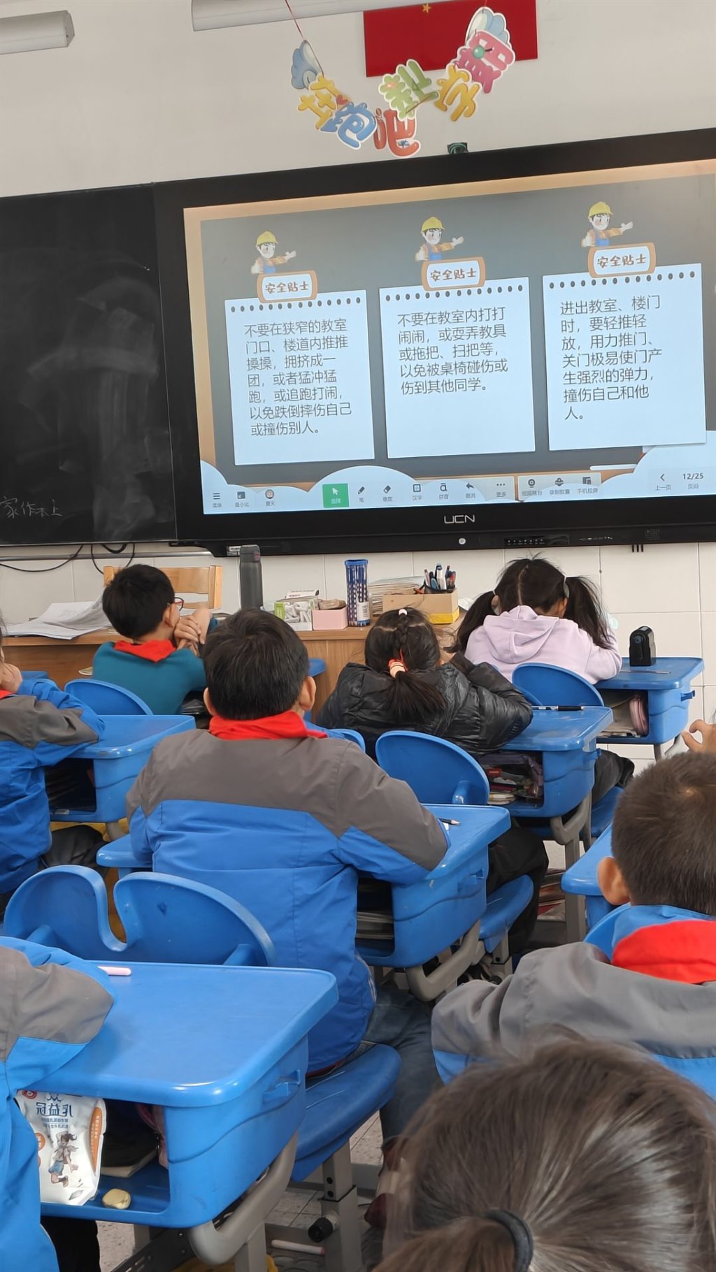 在主题班会上,老师们使用精心制作的PPT课件,以图文并茂、生动有趣的方式,向孩子们详细讲解了上下楼梯安全、课间活动安全、体育活动安全、实验课安全、饮食卫生安全、交通安全等多方面的安全知识,让学生们深刻认识到安全的重要性。