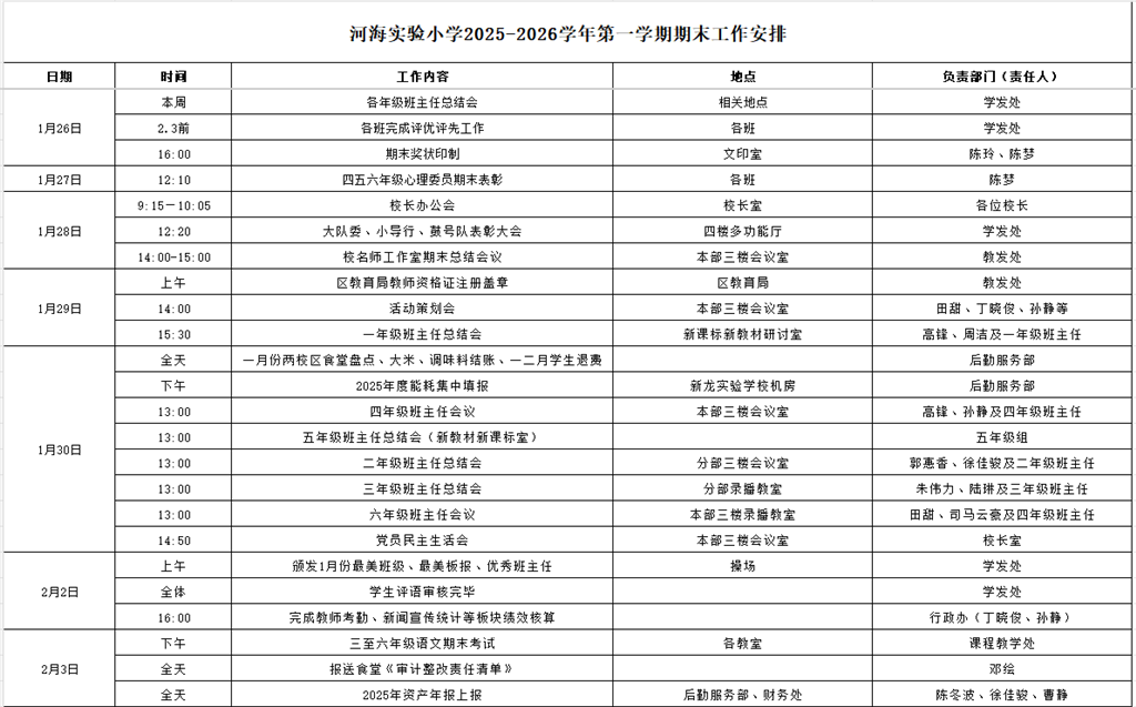 新 2025-2026学年第一学期期末工作安排 (1.26).xlsx